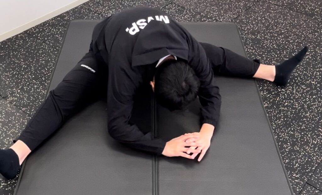 それでも今では、開脚前屈すると頭が床につきそうなところまで、柔軟性が向上しています。